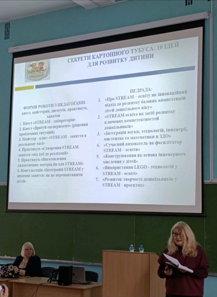 Учасники змогли ознайомитися з унікальними методиками, креативними підходами до розвитку дитини, розкривши секрети використання звичайного картонного тубуса та презентувавши інтегровані методики дослідження світу англійською мовою.